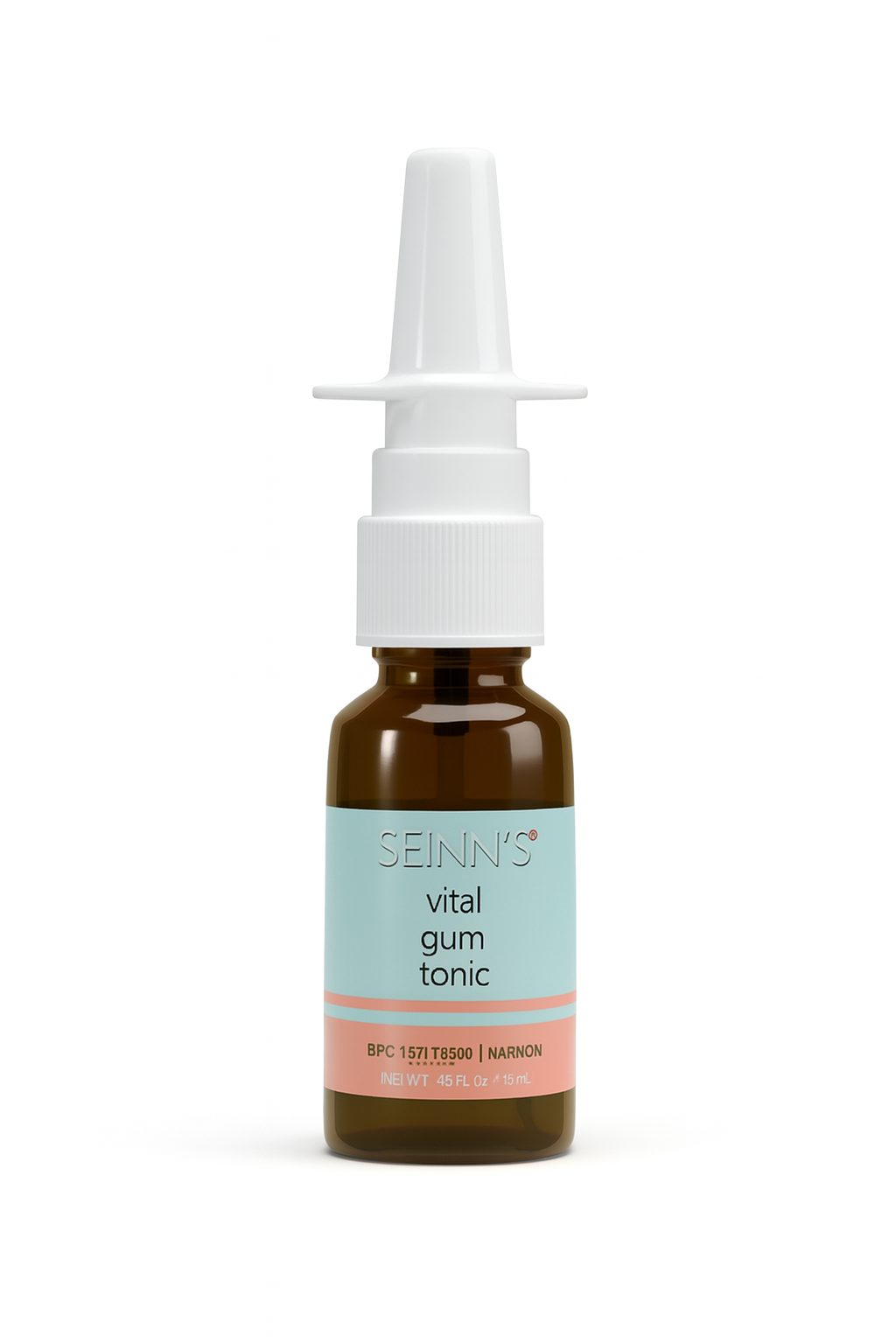 Healthy gums and strong bone are the foundation of lasting oral vitality. Vital Gum Tonic is a potent blend of regenerative peptides and plant-based extract that helps build resilient bone and improve gum attachment. Featuring BPC 157, TB500, and Naringin, this nasal spray supports the deep biological repair your smile deserves — far beyond the reach of conventional care.